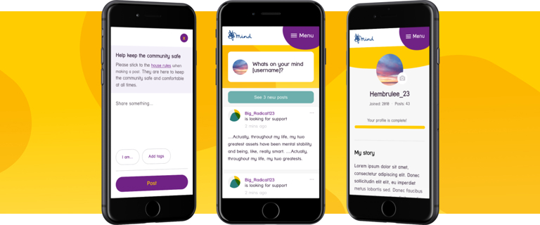 Mind wanted the new community to enable anyone with a mental health problem to feel empowered to access the peer support that they want and need. They wanted to create a scalable online platform –one which will champion peer support as an overarching principle but will also provide a more personalised and tailored experience depending on the interests and needs of the individual.