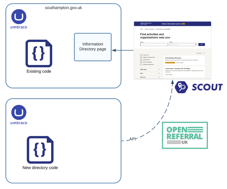 As an Umbraco partner, we already knew that Umbraco would make a great platform on which to build the database and content management, and so proceeded with a hybrid solution - part Scout, part Umbraco, joined by an OpenReferralUK-compliant API.