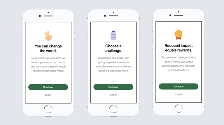 Most users weren’t that bothered about earning points, but when asked what those points could go towards, they suggested either gifts to be sent to them (metal straws, coffee mugs, netted grocery bags), discounts off ethically aware services (e.g. Bulb) or convert to donations.