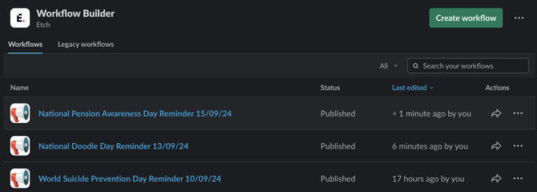 I was tasked to create Slack workflow reminders to ping in a specific channel a week before the awareness day. This will allow employees in Etch to know what is going on and reminds them to prepare for them. This helped me to learn how to automate other Slack tasks, including replying to messages on schedules and requesting input from users.