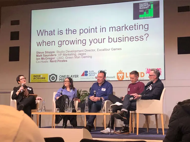 Another highlight for me was the marketing panel, hosted by the fantastic Nerd Pirates, and featuring marketing powerhouses from Jagex, Green Man Gaming, and Excalibur Games. Marketing for games companies who are in a growth stage is a lot of what we do here at Etch Play, so it was great to compare my own notes with what other experts in the industry had to say, both backing up some of my own ideas and giving me some new things to think about. One of my favourite takeaways from the session was around data and information, and the driving home of the point that it's information that is key - which is data with context.