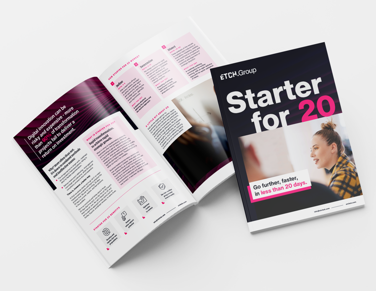 At Etch we advise clients not to go ‘all in’ on major transformation projects until they’ve attacked the problem first. We ask for one thing, 20 days. 20 days to uncover, explore, and test solutions to the problem. We’re so convinced we’ll bring value in those 20 days that if we don’t, you can fire us! We haven’t been fired yet, ever.
